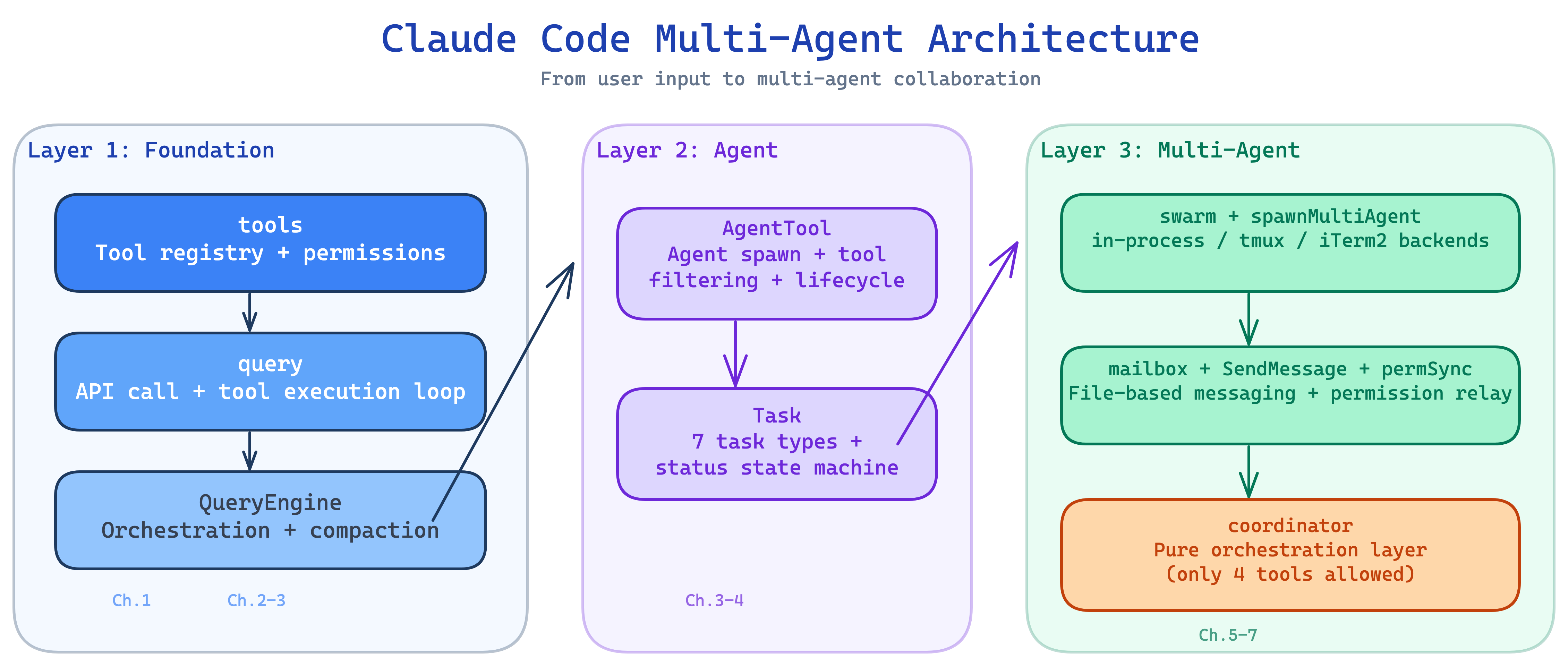 我们不会覆盖全部代码——这门课聚焦于多智能体架构:工具系统、对话循环、Agent 生成、任务调度、群体协作、跨 Agent 通信。